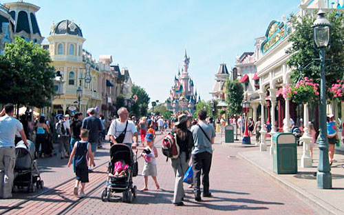 Disneyland Park: You travel through five imaginary countries – Main Street USA, Adventureland, Fantasyland, Frontierland, and Discoveryland. Many rides, gags and lots of action.